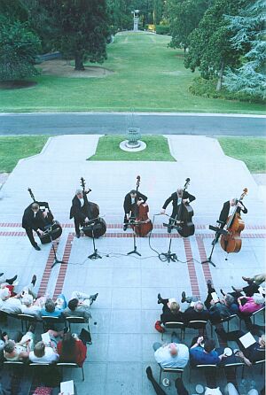 Рустем Габдуллин: У меня там родственников много. Илмар Лапиньш: С концертами ты там ни разу не был? Рустем Габдуллин: Были какие-то разговоры, с концертами я не был. С концертами я в основном был, как ты знаешь, с тобой. По твоей биографии по творческой если пройтись, то там довольно часто можно вспомнить страницы Томска, Лиепаи и так далее. Илмар Лапиньш: По поводу нашего маленького шарика Земли, ты можешь назвать четыре или пять своих самых любимых мест? Может, это какие-то города, может горы, может какие-то государства, твои какие-то точки на Земле, где бы ты хотел еще раз побывать? Рустем Габдуллин: На самом деле я люблю, если касается концертов, чтобы была хорошая цивилизация, хороший зал, красиво, удобно для музыкантов. Илмар Лапиньш: Я не это имел в виду, я имел в виду природу. Рустем Габдуллин: А природа мне всегда нравится, особенно море. В Америке, в Калифорнии, когда побережье, изумительный океан - это лучшие места, пожалуй. Испания, Италия. Не был, очень хвалят, не был, как ни странно, в Португалии. Там тоже говорят очень хорошо в этом смысле. Лиепая прекрасная, там изумительная прохлада, свежесть морская. Илмар Лапиньш: Ты помнишь, как мы были в Лиепае и тебя композитор Цзо доставал. У Рустема был новый, вернее, не новый, он взял контрабас из госколлекции итальянский, страшно дорогой, и он просто трясся над этим контрабасом. И когда наш китайский друг Цзо это заметил, он начал доставать Рустема, говорил, что бандиты унесли контрабас, что он видел щепки около входа контрабаса. И когда он тебя добил, я помню, Цзо сказал: какая разница между виолончелью и контрабасом? И Цзо когда сказал, что контрабас больше горит, ты схватился за голову. Рустем Габдуллин: По этому поводу очень много всяких шуток. В чем разница между скрипкой и контрабасом, что больше говорит, или больше и нежнее, контрабас или скрипка. Цзо, конечно, молодец, он всегда с тонким юмором относился к этому инструменту. В принципе, он одобрял то, что мы с тобой делали. Но он ничего не написал для контрабаса. Я просил его для ансамбля неоднократно, тоже не написал. Будем надеется. Илмар Лапиньш: У тебя есть что-то такое, что ты сам хотел бы о себе сказать по поводу музыки? Ты любишь музыку? Рустем Габдуллин: Разумеется. По поводу музыки? Что музыка - музыка развивается, и что тут можно сказать? Это целый мир, который существует сам по себе без относительно моих к этому мыслей. Моя область - достаточно узкая область, мы говорим все время о контрабасе. Но, тем не менее, все-таки благодаря контрабасу мне предстоит играть на днях концерт Шуберта в компании, между прочим, с Башметом, с Третьяковым. Это будет 22-го числа в Малом зале Консерватории. То есть такие бывают праздники, не часто, но очень запоминающиеся события. Это памяти Когана фестиваль. И вообще столько написано прекрасной музыки, где контрабас находит свое достойное место. Хотя, конечно, наш сумасшедший энтузиазм такие странные формы принимает, как контрабасовый ансамбль. Если разумно к этому относиться, с какой-то мерой юмора, теплого юмора, то это имеет право на существование. Илмар Лапиньш: Помнишь, был период моей жизни в Сибири, и ты довольно часто туда приезжал как солист. Там возникали первые твои мысли насчет контрабасового ансамбля, потому что, я помню, один раз ты удалился со всеми четырьмя или пятью нашими контрабасистами, вы что-т