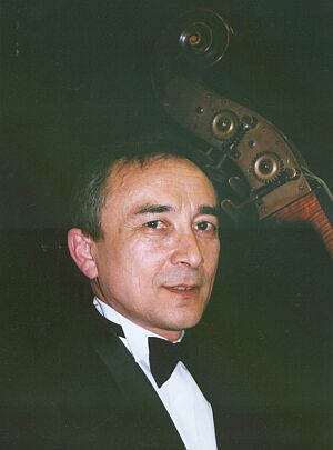 Сергей Юрьенен: Начинаем серию передач, которую подготовил и ведет Илмар Лапиньш. Заслуженный деятель искусств России, Лапиньш дирижирует оркестрами в диапазоне от Вены до Москвы и от Вероны до Петропавловска-Камчатского. В "Концертном зале Свободы" гостями Лапиньша станут деятели российской музыкальной культуры. В беседах и за своими инструментами. "Шутили, конечно, что я не такого большого роста, но мне приходилось, особенно, когда я работал в камерном оркестре, носит очень много лет этот инструмент и возить его во всех видах транспорта и по всем странам. И, конечно, шутили, что мне надо было выбрать флейту". Сегодня - солист Российского Национального оркестра, профессор Московской Консерватории, народный артист России Рустем Габдуллин. Контрабас. Илмар Лапиньш: Разъезжая по бывшему Союзу с гастрольными концертами, я не переставал удивляться безграничному количеству поистине исключительно талантливых музыкантов, играющих в наших симфонических оркестрах. Практически в каждом коллективе, будь то на периферии либо в столице, непременно было два, три, иногда четыре музыканта европейского или даже мирового класса. Остальные музыканты подтягивались, благодаря им, к ним тянулась публика, в результате кипела музыкальная жизнь в городе, особенно, если отсутствовал музыкальный вуз, и оркестр был практически единственным музыкальным маяком в данном регионе. Возьмем хотя бы один небольшой пример... Иркутский оркестр богат своей историей - здесь работали не только выдающиеся, но и легендарные музыканты. Чего только стоит имя скрипача Леонида Мессмана, который во время учебы в ЦМШа стоял на одной ступени с самим Леонидом Коганом. И Мессман не единственный - концертмейстерами оркестра были тонкий музыкант Лев Касабов и очень рано от нас ушедший скрипач, удивительный русский интеллигент Александр Беляев. Там же, в Иркутске, всю свою артистическую жизнь провел один из лучших кларнетистов России Рафик Варшавский. Обязательно надо упомянуть литавриста Геннадия Третьякова, маэстро Игоря Соколова и, конечно, долгое время возглавлявшую филармонию Александру Давидовну Бери... В цикле наших передач хотелось бы представить музыкантов - личностей, посвятивших свое бытие борьбе за лучшую жизнь в музыке. Наши герои - это выходцы из филармонических оркестров, солисты, композиторы, словом, все те деятели музыкального искусства, которые своей работой не только внесли весомый вклад в нашу культуру, но - каждый в своей отрасли - продвинули вперед общее развитие данной области музыки. Наши герои - люди, постоянно совершающие подвиги, которые становятся заметны не сразу. Вслед за Михаилом Булгаковым мне хочется воскликнуть: "Итак, вперед, за мной, слушатель Радио Свобода". Наш первый герой - выходец из оркестра концертмейстер группы одного из лучших оркестров Европы, пламенный патриот своего инструмента, первый в мире создавший ансамбль... Короче, перед вами народный артист России, профессор Московской Консерватории, контрабасист Рустем Габдуллин... - Рустем, вот самое первое музыкальное впечатление в твоей жизни? Рустем Габдуллин: