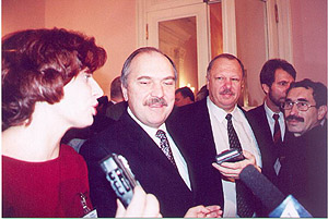 Вот все это вместе рождает ту самую ситуацию, которая, в общем, честно говоря, вызывает противные чувства, потому что это ничего общего не имеет с наведением правового порядка в стране, а, по сути, является самой гнусной разновидностью политиканства. Михаил Соколов: Ну, что ж, перейдем к ситуации в регионах. Вот в одном из таких экзотических регионов, это Еврейская автономная область, прошли выборы в местное законодательное собрание. Послушаем репортаж. Владимир Иващенко: Главной неожиданностью прошедших в минувшее воскресенье выборов депутатов законодательного собрания Еврейской автономной области стало, пожалуй, поражение всех 11 кандидатов, выдвигавшихся местным отделением Коммунистической партии Российской Федерации. Накануне коммунистам наоборот прочили победу, и, прежде, всего потому, что еврейская автономия раньше всегда считалась красной, то есть голосующей преимущественно за представителей Народно-патриотического союза России. Так было, например, на предыдущих, двухлетней давности, выборах Государственной Думы Российской Федерации, Биробиджанской городской Думы, где левые вообще смогли набрать большинство. Но в итоге 14 мест в областном парламенте достались кандидатам, поддержанным не участвовавшими напрямую в выборах "Единством" и "Яблоком", а пятнадцатым стал профессиональный спасатель Вячеслав Тимошков, опередивший своего основного соперника, врача Павла Винникова из блока "Единство", всего на пять голосов. Примечательно, что на вторых ролях во многих округах оказались, опять же, не коммунисты, а уральцы, сумевшие подобрать группу молодых кандидатов, смело критиковавших местную власть и в то же время предлагавших свои пути подъема экономики в дотационной области. Представители КПРФ построили борьбу как раз на одной критике и разоблачениях, что, видимо, уже стало утомлять избирателей. Михаил Соколов: Рассказывал Владимир Иващенко, это был репортаж из Биробиджана. И мой вопрос депутату Государственной Думы Виктору Похмелкину. Вот я видел данные ВЦИОМа, опросов, популярность компартии стала падать неожиданно, 39 было процентов, теперь 31, вот такой вот исход выборов в Еврейской автономии. Вот вы верите, например, вы часто бываете у себя в Перми, что коммунисты, действительно, стали терять избирателя? Виктор Похмелкин: Знаете, мне трудно вот именно применительно к Перми говорить, коммунисты никогда не были популярны в нашем регионе. И в самые лучшие для себя времена там их кандидаты с трудом где-то там проходили по округам, почти не получалось у них, а по спискам партийным они там имели 9-10 процентов, не больше. Но в целом я понимаю, что, в общем, стареет избиратель КПРФ традиционный, а ничего нового эта партия предложить обществу не может. То есть, как бы процесс социал-демократизации, который мог бы быть спасительным для нее, не происходит. Пытаются усидеть на двух стульях. Это, кстати, беда многих наших сегодняшних политических партий, я это и к СПС отношу. И поэтому, конечно, уровень доверия падает. Это - во-первых. Во-вторых, вот речь-то ведь идет о региональных выборах. А надо сказать, что люди-то вообще значимость партий не понимают. Вот за людей они готовы голосовать, Я так понял, что ни один кандидат, напрямую выдвинутый от партии, не победил. Прошли люди там при поддержке партии, а это совсем другая... Михаил Соколов